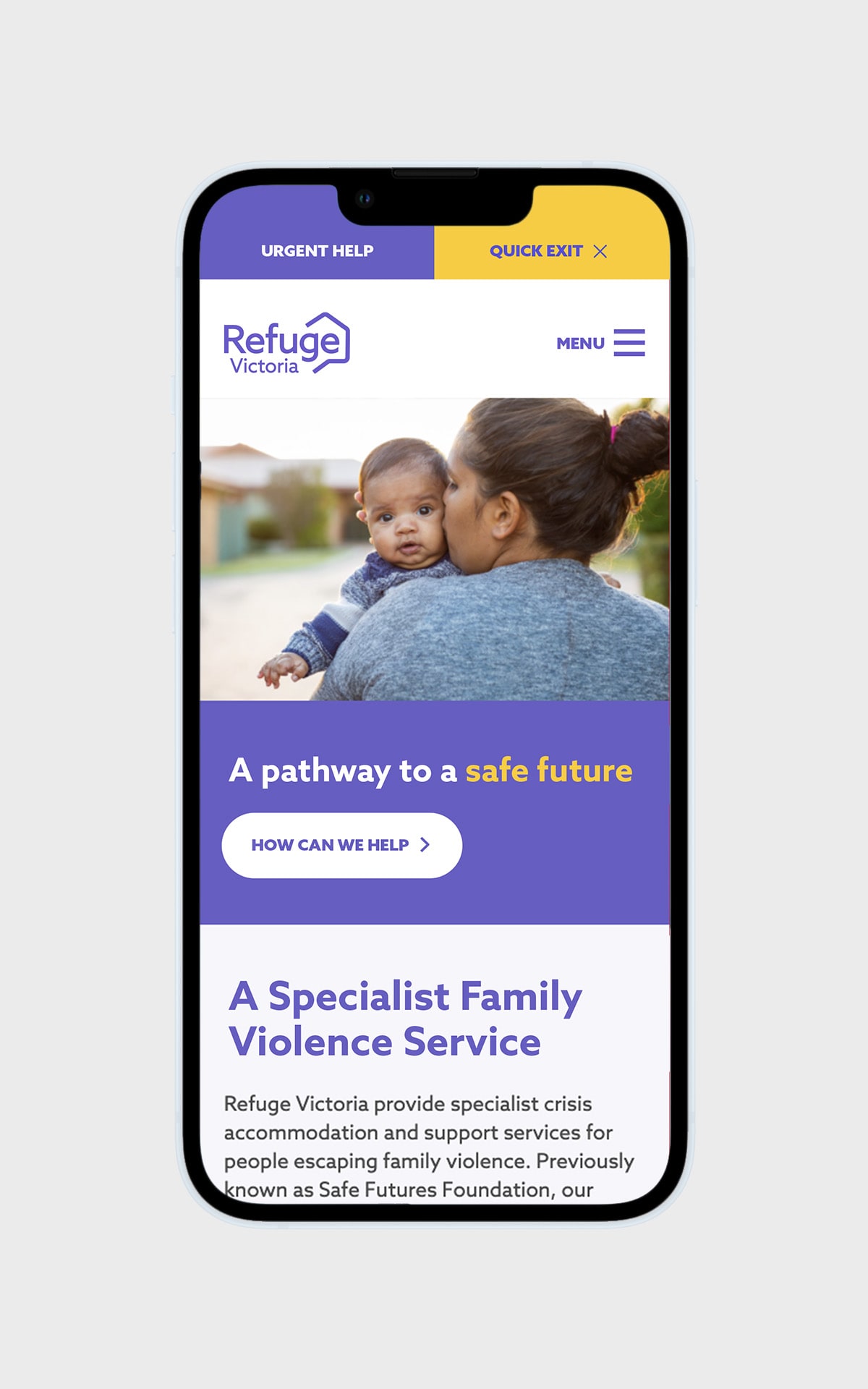 Previously called Safe Futures, Refuge Victoria provide specialist crisis accommodation and support services for people escaping family violence.